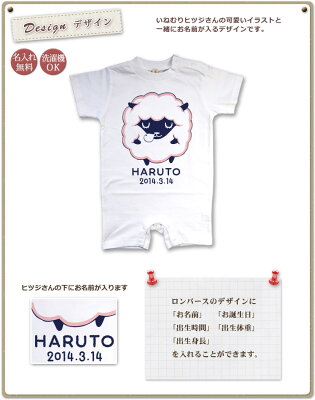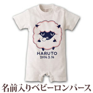 出産祝い 名入れ ロンパース ボディスーツ 動物 デザイン ひつじ A 男の子 女の子 赤ちゃん 新生児 ベビー 服 カバーオール 80 半袖 名前入り 名入れ無料 百日祝い 【メール便対応】 【ココロコ】