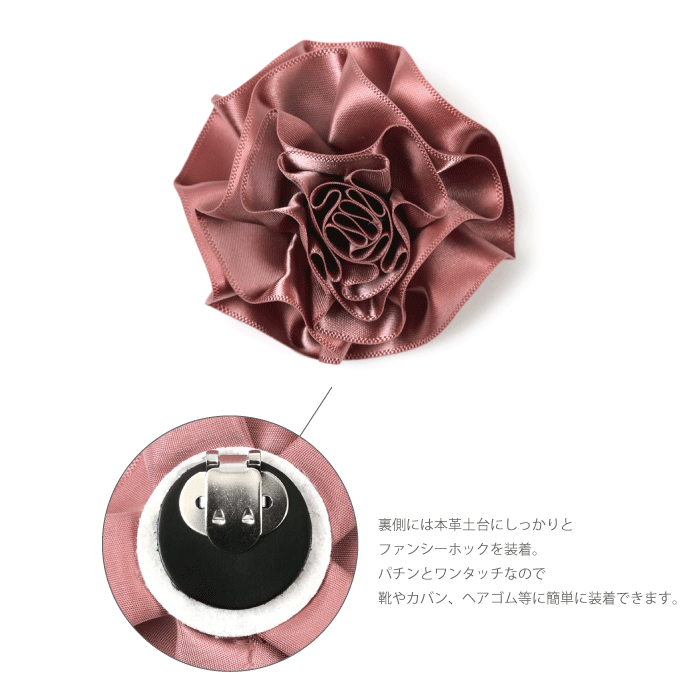 いつもの装いに手軽にプラスできる品質の良い日本製シューズアクセサリー シューズはもちろん バックやヘアアクセサリー、色々なアレンジが楽しめます。