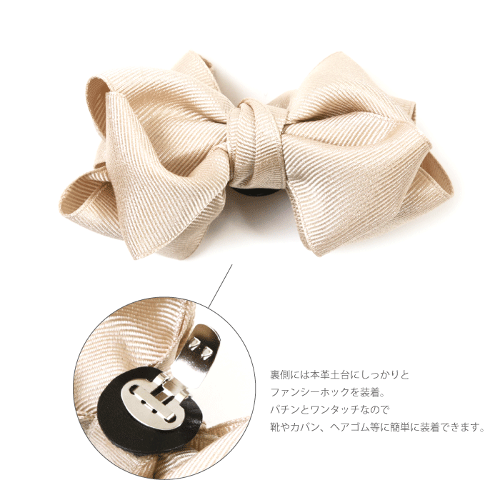 いつもの装いに手軽にプラスできる品質の良い日本製シューズアクセサリー シューズはもちろん バックやヘアアクセサリー、色々なアレンジが楽しめます。