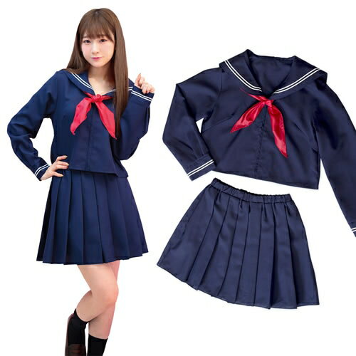 制服の定番紺セーラー!これを着るだけで清楚な気分になれちゃう!スカートはウエストゴムで着やすいです。