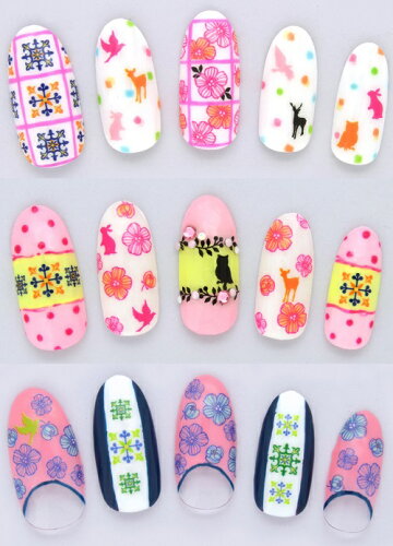ツメキラ(TSUMEKIRA) ネイルシール【スタンダードスタイル 北欧柄 ピンク/ブルー】独特な雰囲気と色使いの植物モチーフ&動物シルエット♪◆北欧 シール シカ 鳥 お花 バンビ うさぎ ラビット うくろう シルエット